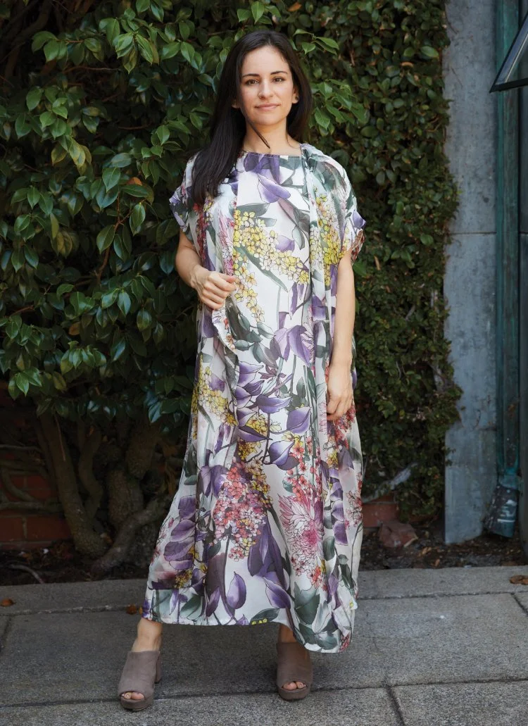 21573 Pina Poncho in Carlotta Print Sheer Silk, 71383 Osca Pant in Carlotta Print Silk