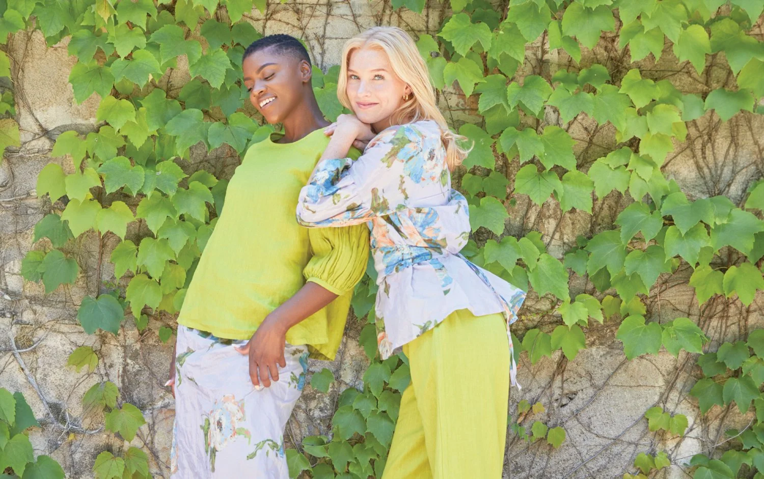 Gianna Shirt, Long Full Pant in Garden Cumbria Linen/Viscose